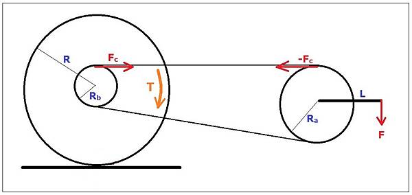 此力矩T=FcRb即是驅動輪的輸入力矩, 或施力矩.